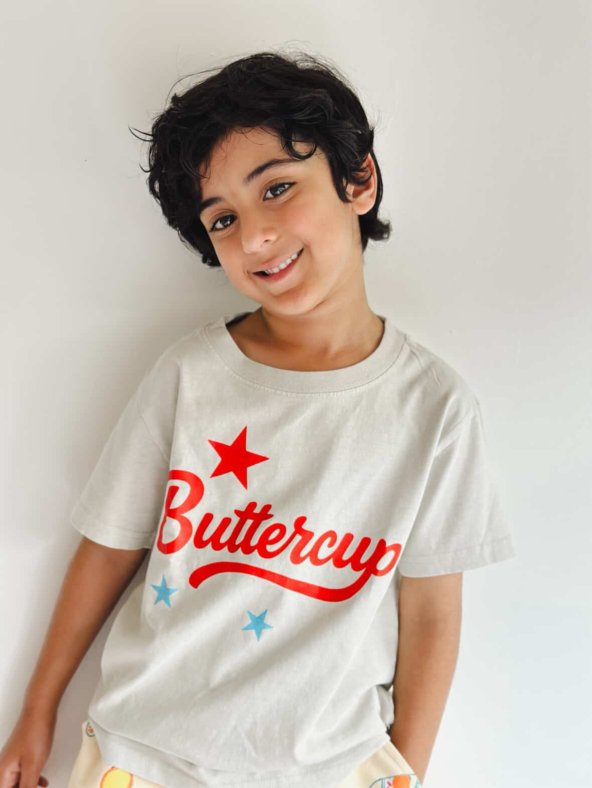 Our Buttercup Tee is serving retro cool with a pop of red and a sprinkle of stars. Comfy, oversized vibes with that effortlessly fun energy your little legend brings everywhere they go.