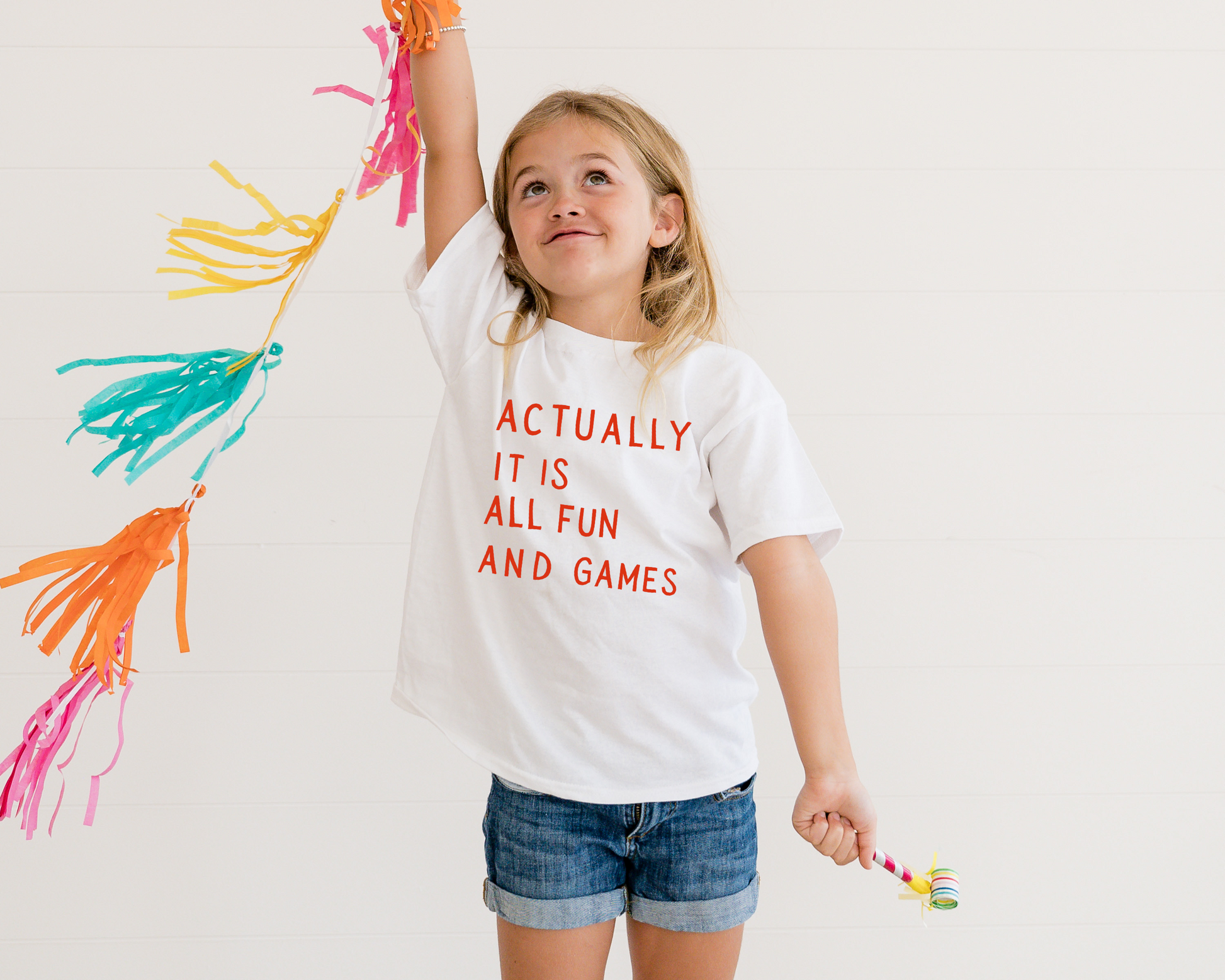 Meet the tee that brings the giggles, sunshine and cheeky confidence wherever your little one goes. Made for the kids who turn every hallway into a runway and every moment into a memory, this soft white tee features bold, bright lettering that pops just as much as their personality.