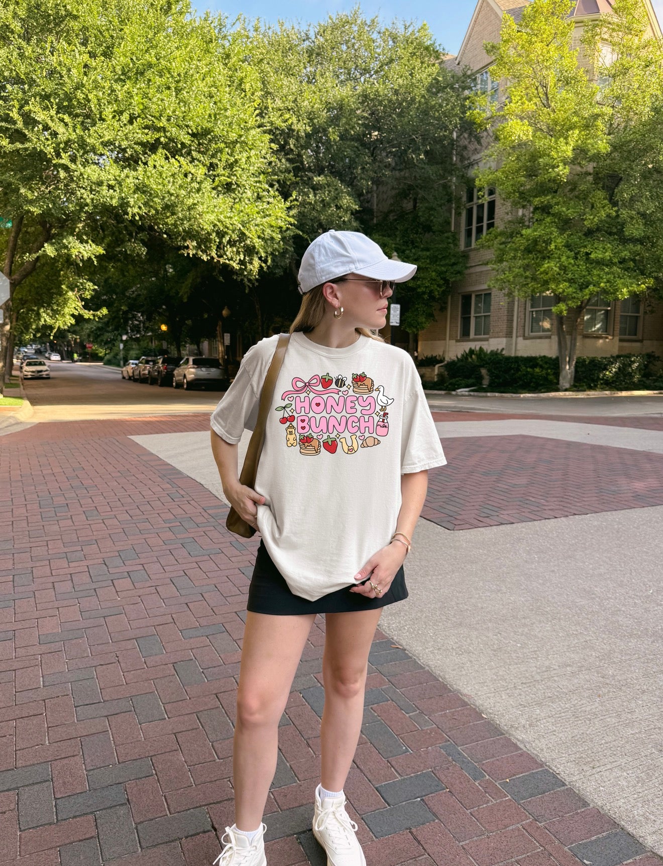 Say hello to our signature Honeybunch Logo Tee – a little piece of our world, made to be worn and loved. Featuring our iconic Honeybunch logo in a sweet, playful illustration style, this tee is all about cosy vibes, soft colours, and everyday joy.