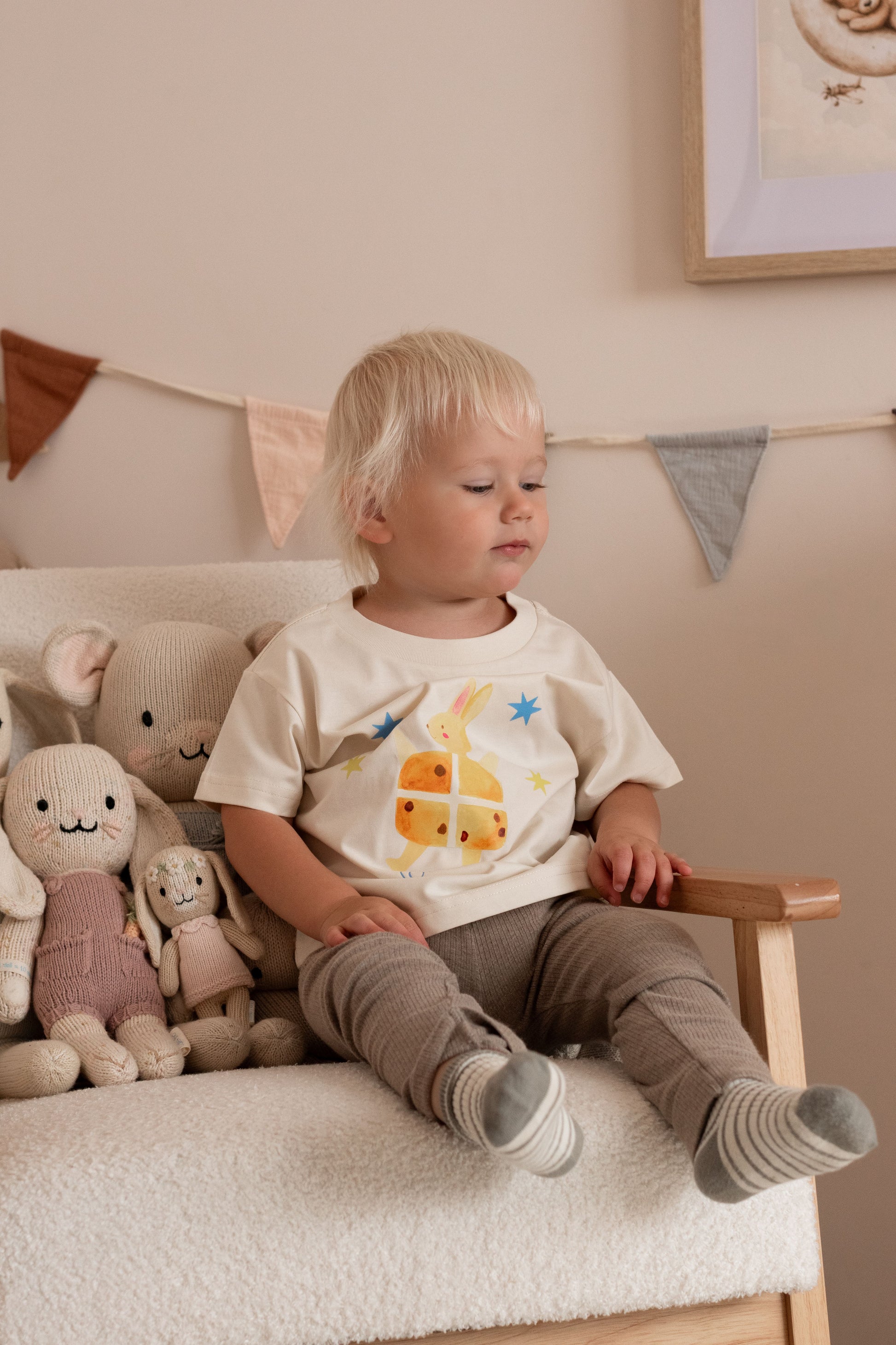 This limited edition cutie features our signature bunny with the most adorable hot cross bun belly (we can’t cope 🥹). It’s playful, nostalgic, and made for little ones who love a bit of magic in what they wear.