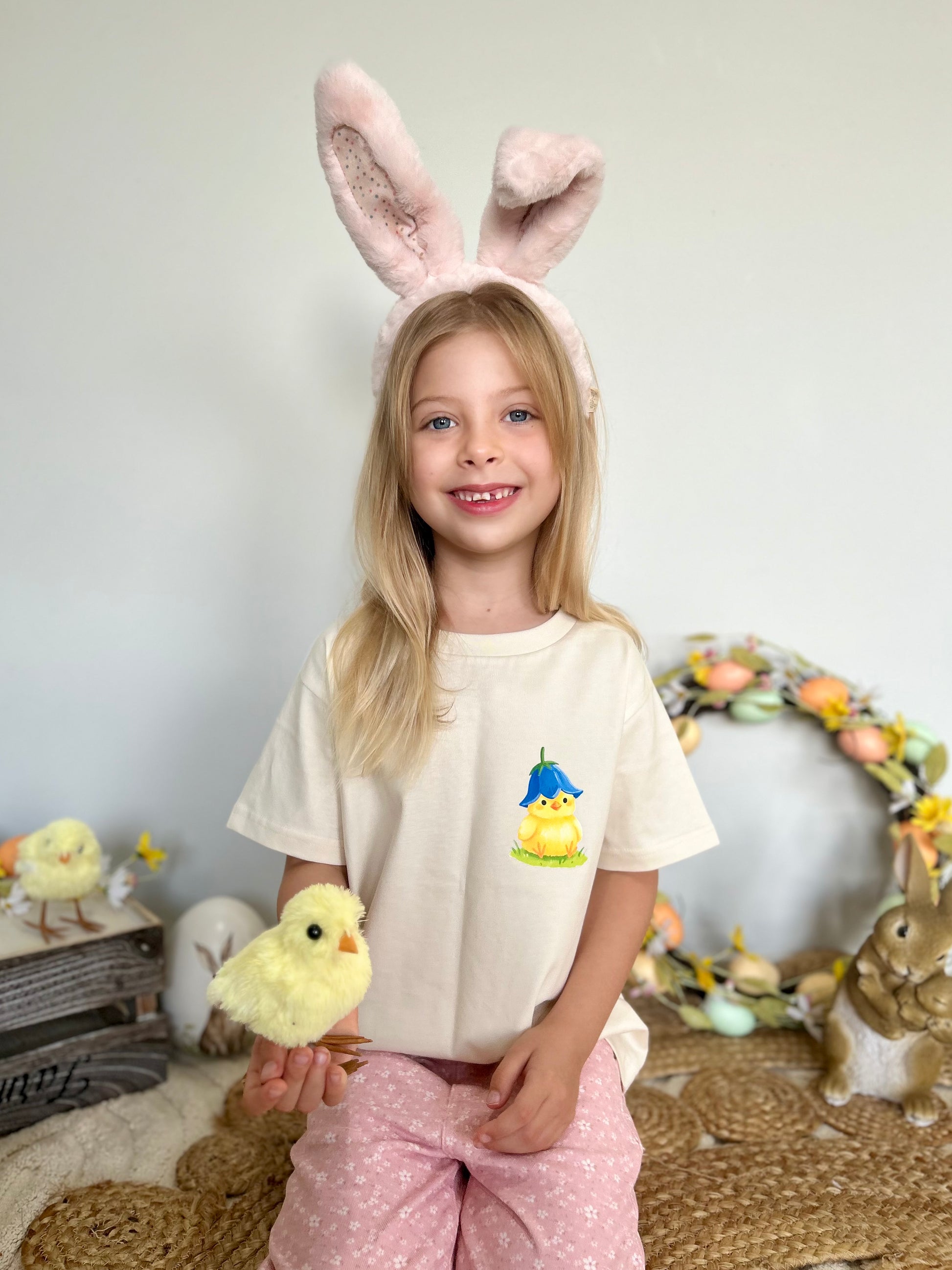 Featuring an exclusive front and back design, this dreamy tee showcases the sweetest little chick artwork created especially for Honeybunch by local artist Paper & Beau.