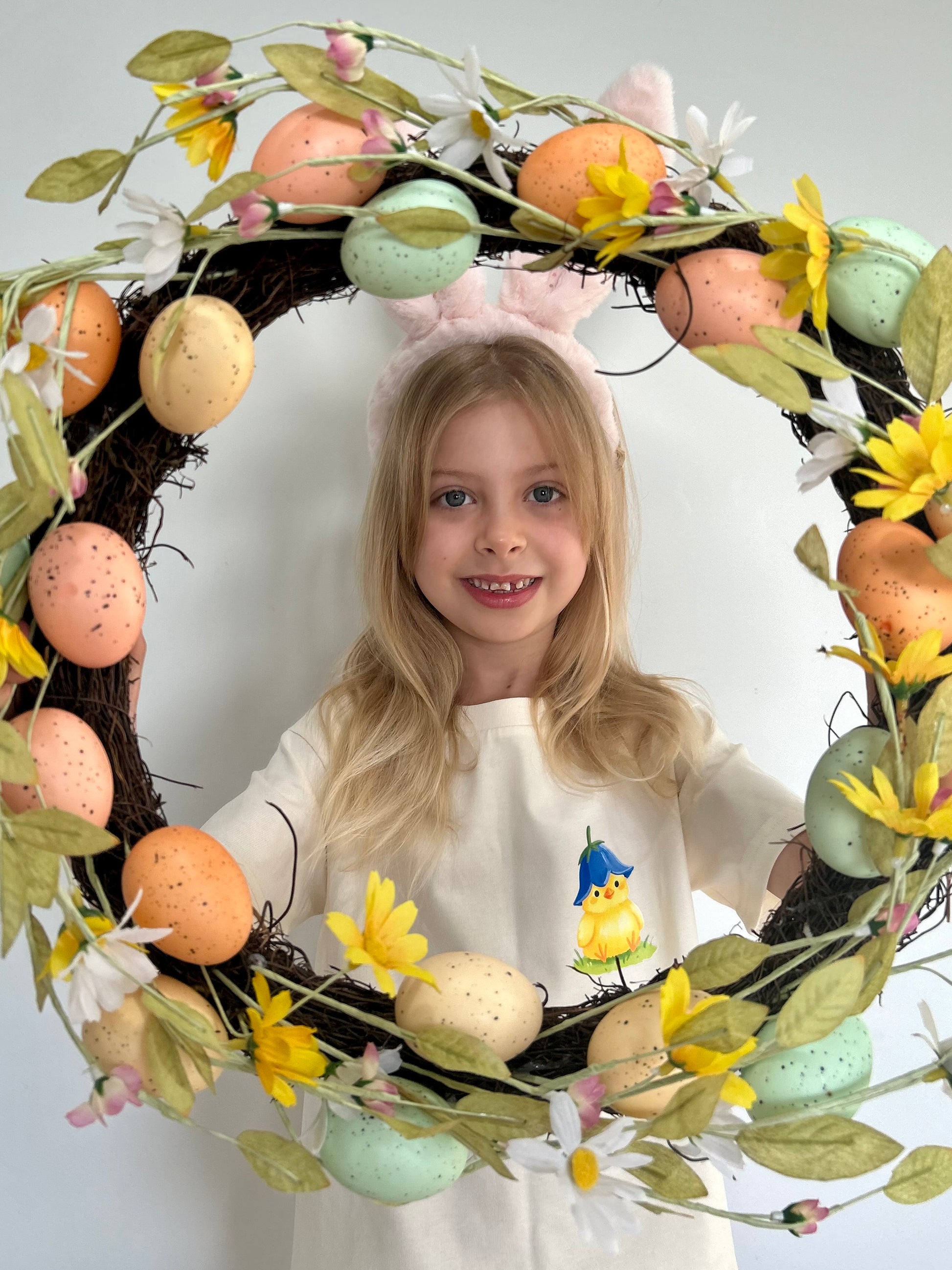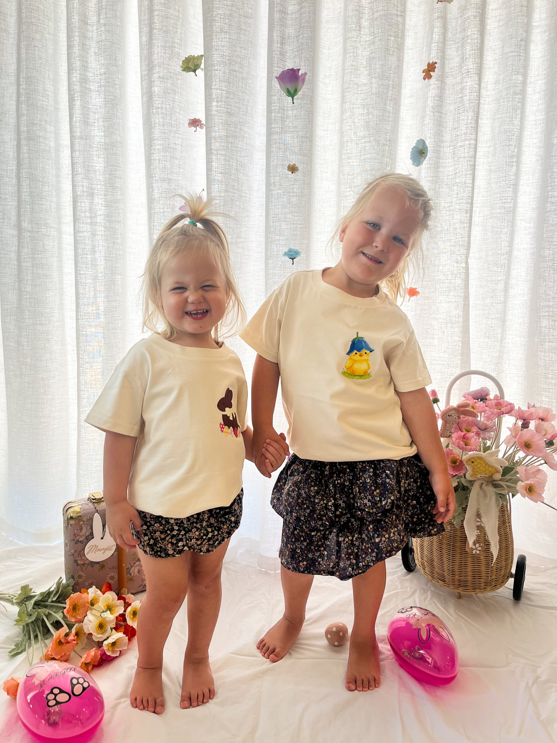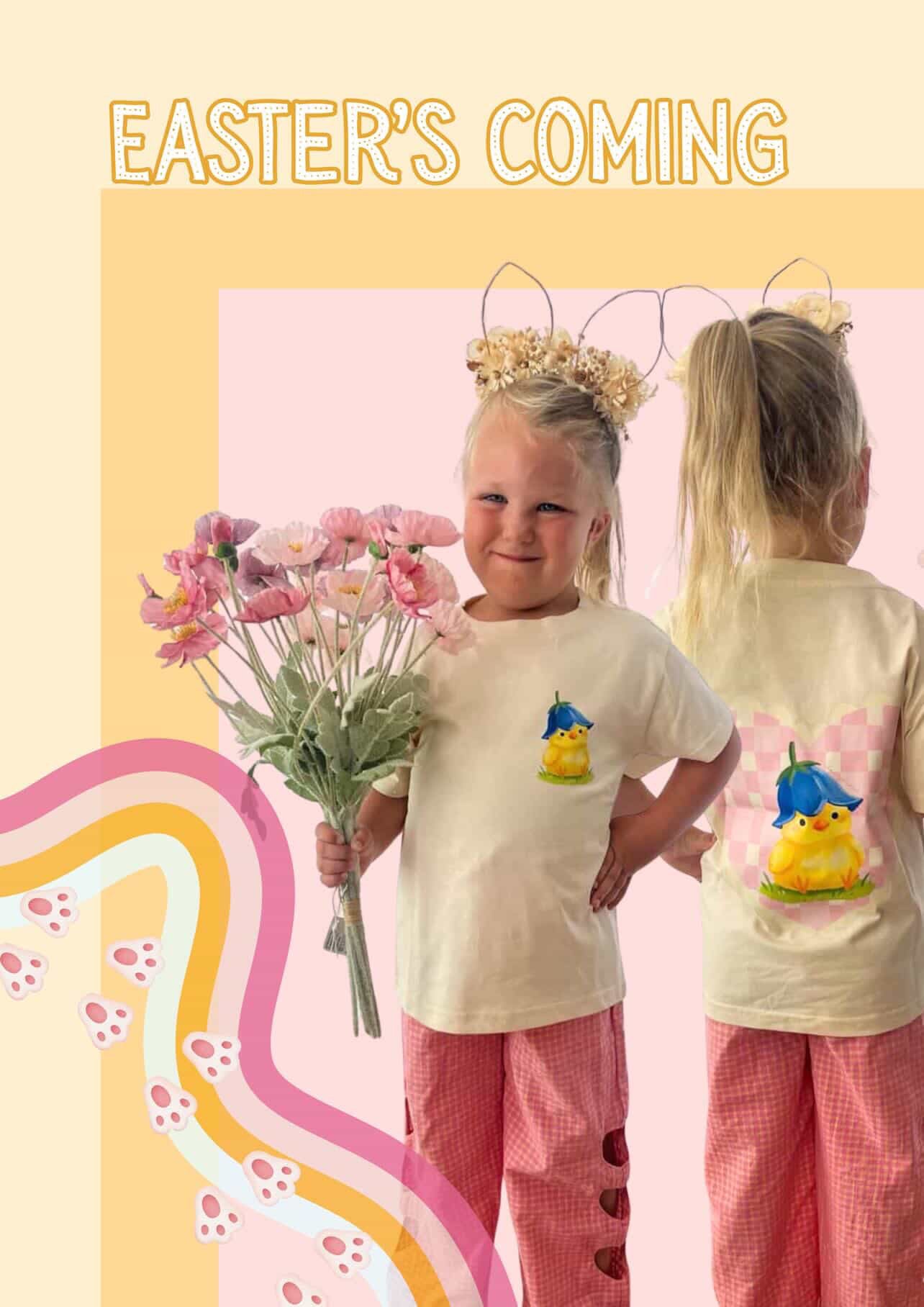 Soft pastel tones, playful Easter vibes, and a design that’s just as cute from the back as it is from the front — because details matter around here.